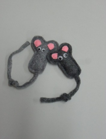 Ręcznie robiona myszka z filcu.      Wymiary Długość myszki 6 cm. plus ogonek. Całkowita długość 14 cm +/- 2 cm       Myszki wysyłane są w kolorach dobranych losowo i mogą się różnić od tych na zdjęciu. Uszkodzoną zabawkę należy niezwłocznie wyrzucić, nie wolno dopuścić do zjedzenia fragmentów lub wypełnienia zabawki!