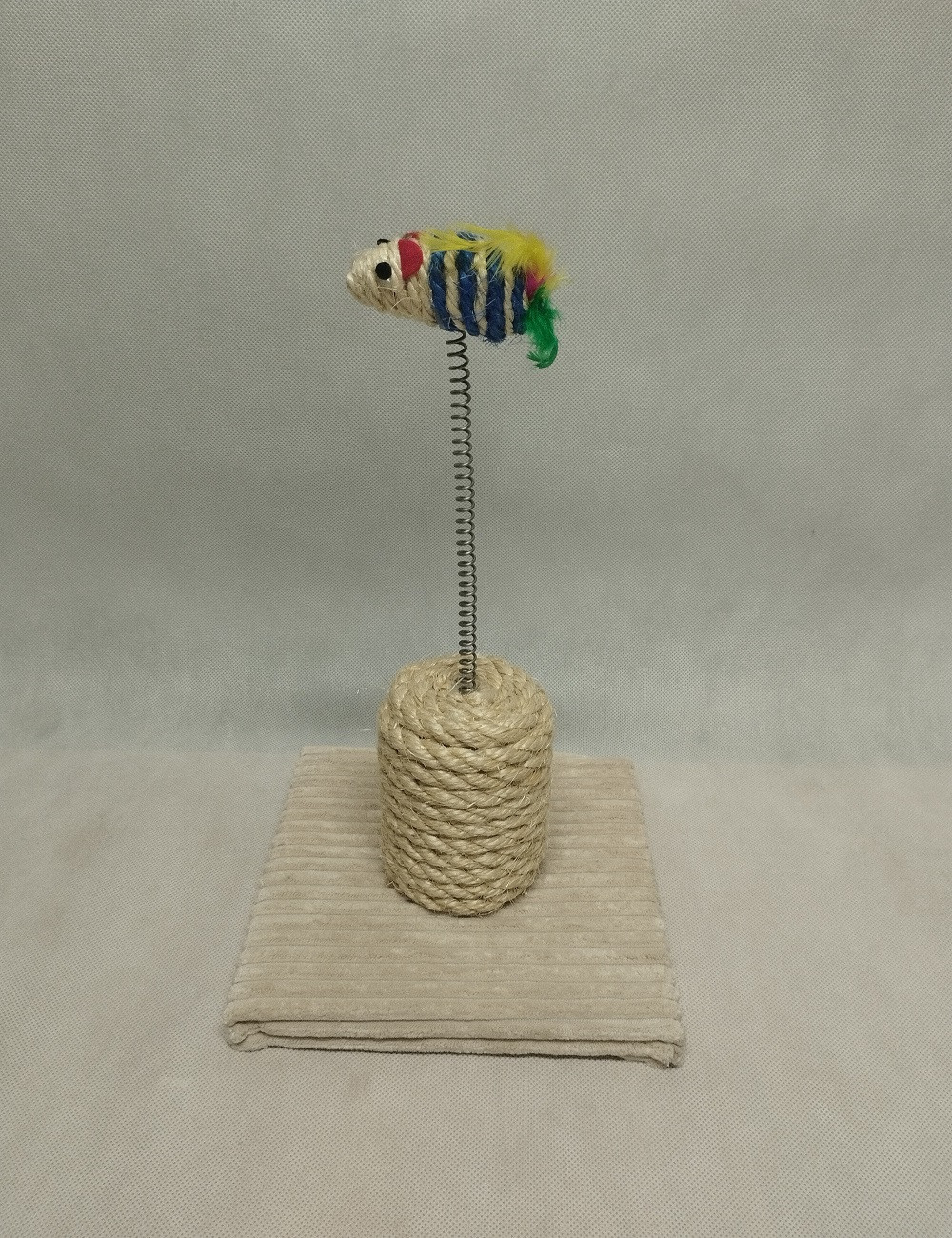 Na stabilnej podstawie jest mocowany mały sizalowy słupek, na górze jest mocowana sprężynka z zabawka.