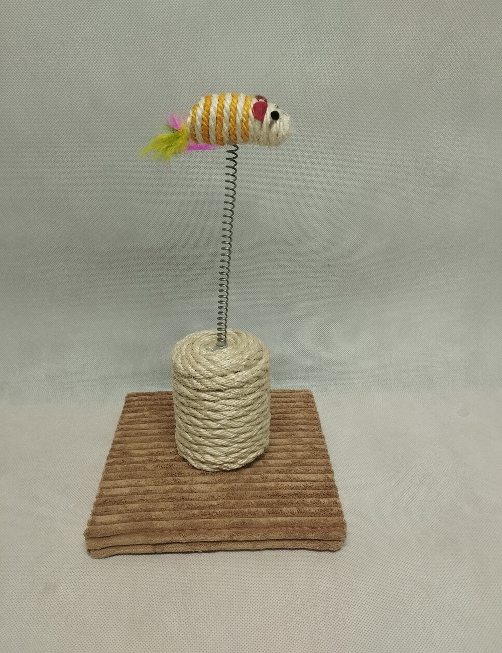 Na stabilnej podstawie jest mocowany mały sizalowy słupek, na górze jest mocowana sprężynka z zabawka.