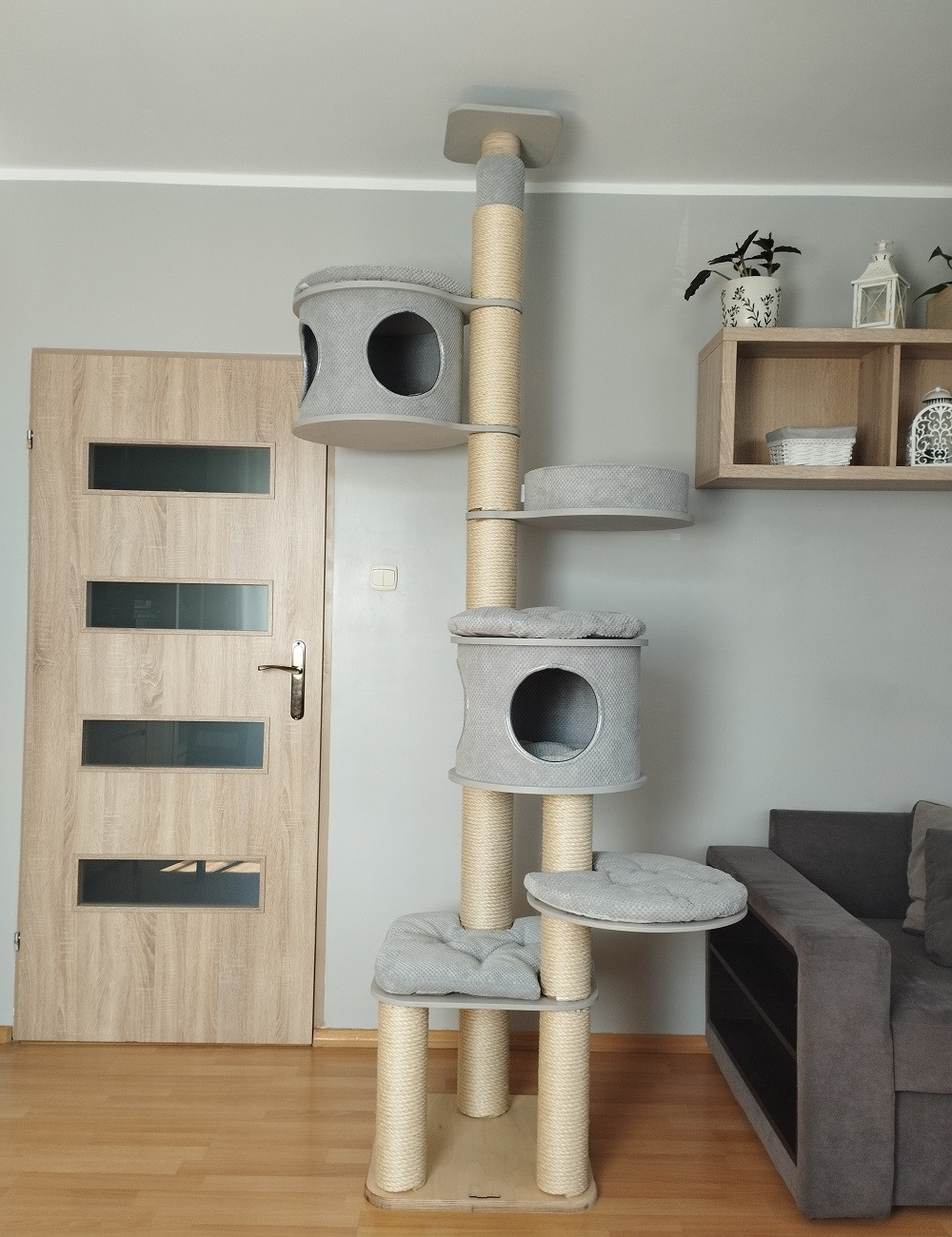 Wszystkie koty uwielbiają obserwować otoczenie z dużych wysokości, drapak sufitowy daje im taką bezpieczną możliwość.