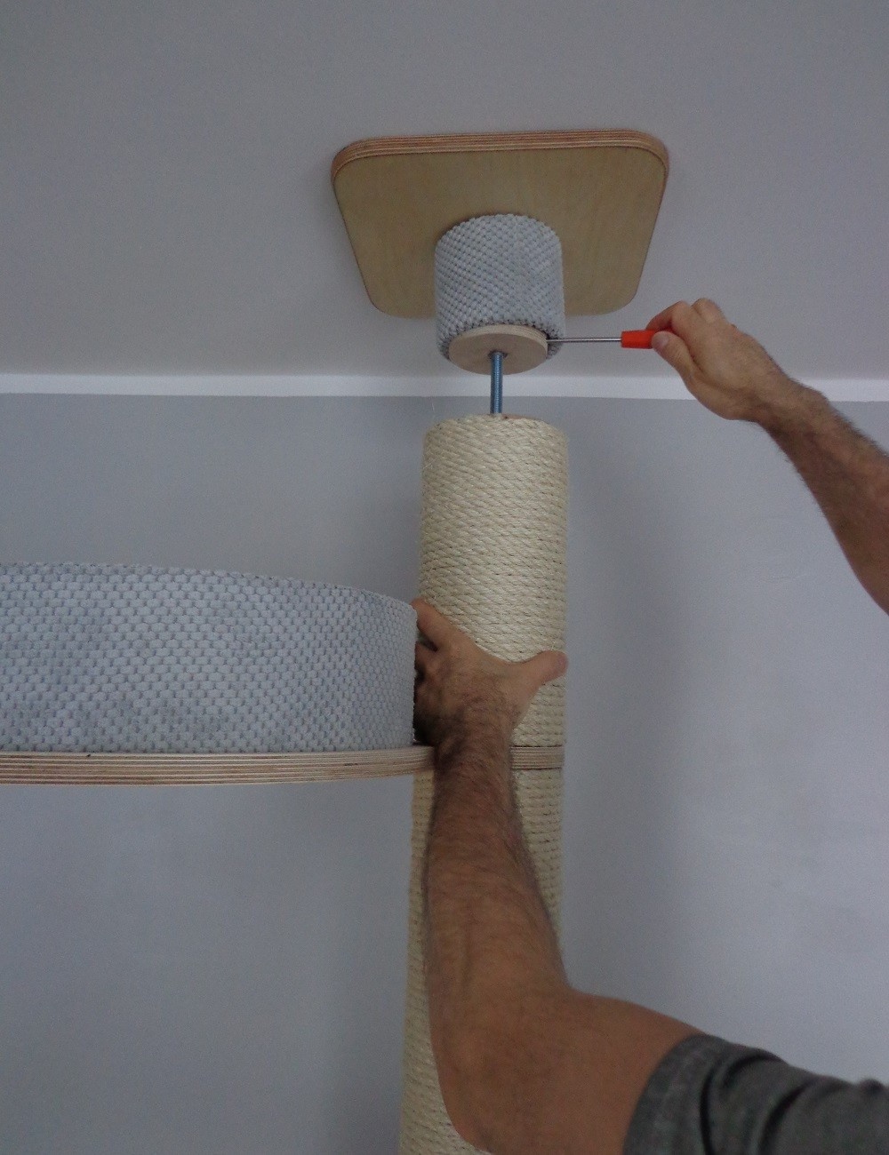 Drapak sufitowy wykonany jest ze sklejki wodoodpornej, lakierowanej na wybrany kolor.