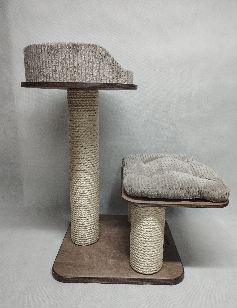 W tym modelu kociego drzewka znajdują się dwie półki dla kota.