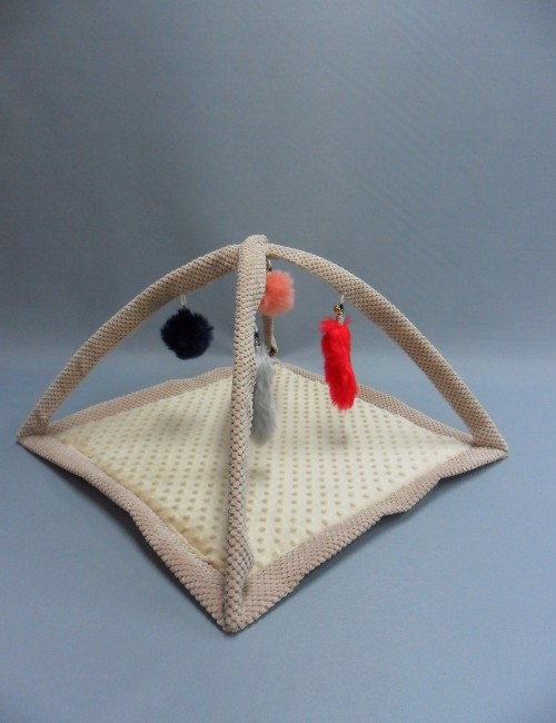 Zabawka jest wykonana z miękkiego futerka. Brzegi wykończone tkaniną tapicerską.