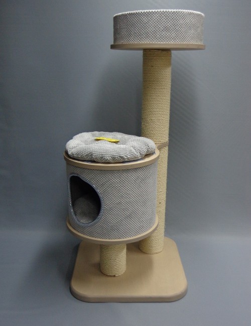 W tym modelu znajduje się buda dla kota oraz legowisko typu rozeta.